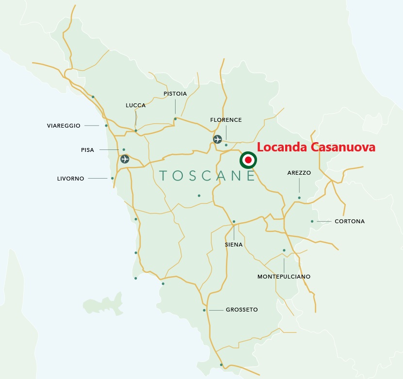 Op een paar kilometer afstand van Chianti ligt Locanda Casanuova verscholen tussen het groen. Het gerenoveerde pand wordt omgeven door olijf- en wijngaarden die bij het land van het hotel horen. De eigenaren cultiveren het land op een natuurlijke wijze, zonder pesticides. Met geduld en aandacht creëren ze heerlijke olijfolie en wijnen die de authentieke smaak van het de streek bevat.